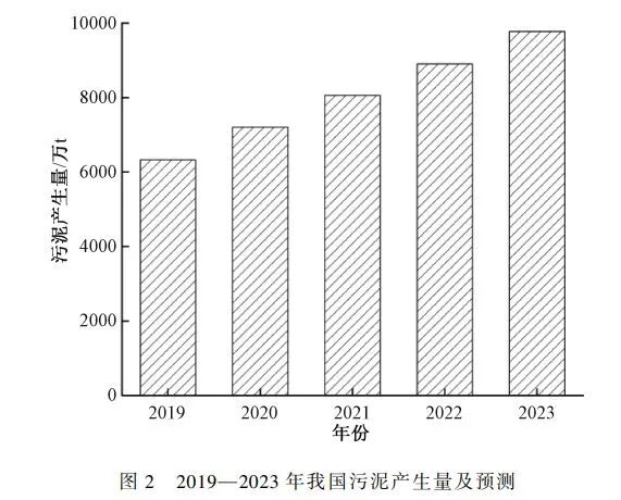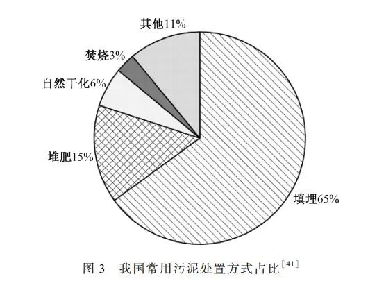 市政污泥富含有机物、营养物质、重金属和致病生物体(病毒、细菌等),具有含水量高、易腐败、散发恶臭等特点,若处置不当,将影响人体健康和生态环境。截至2019年底,我国污泥产量超6000万吨(按含水率80%计),预计2023年将突破9000万吨(如图2)。 图3显示了市政污泥常见处置方式,包括填埋、堆肥、自然干化、焚烧和其他技术(如海洋倾倒) 。这些处置技术在实际生产应用中发挥着十分重要的作用,但也存在着有害物质残留、重金属污染、水体污染、土地资源浪费、成本高等缺点。目前,协同焚烧被认为是市政污泥最有效的处置方式之一,选择污水处理厂周边的垃圾焚烧厂、燃煤电厂、水泥厂等现有设备就近处置市政污泥,能及时高效地解决市政污泥处置问题,克服高温时的能量不足,节约锅炉或窑炉生产过程中的燃料或原料,实现资源化利用,在环保和经济效益方面具有优势。