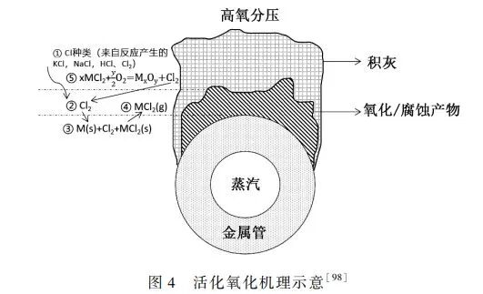 城市固废中如生活垃圾中Cl和碱金属(K、Na)含量通常高于煤,高温下极易生成碱金属氯化物,使燃煤锅炉中的结渣、腐蚀、气体污染物和细颗粒排放问题更加严重,其腐蚀过程如下: