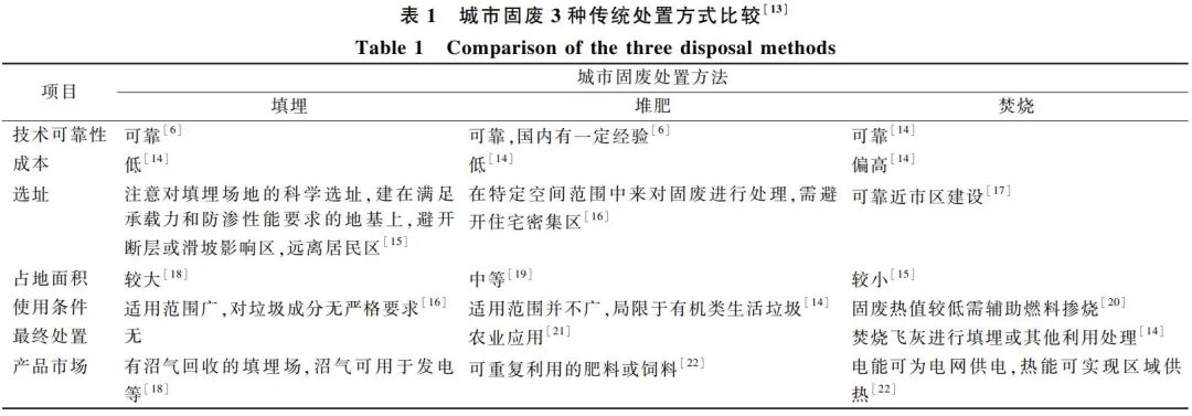 城市固废的传统处置方式主要有填埋、堆肥、焚烧,表1详细比较了这三种方式。 前两者难以实现高效的减量化、无害化和资源化。焚烧法以占地面积小、处置速度快、无害化程度彻底、减容效果显著、可实现热能回收利用等优点,发展迅速并成为主要的处置方式。但是,我国部分垃圾焚烧厂存在垃圾量不足、热值偏低的问题,需要加入煤、燃油等助燃,导致成本高和二次污染。利用锅炉或工业窑炉共焚烧可解决上述难题,但势必会对设备运行和污染物排放产生影响。以目前处置较为困难、备受关注的垃圾焚烧飞灰和市政污泥为例,两者成分迥异,应用此技术需要针对固废各自的特点进行选择,尽量减小对锅炉及工业窑炉的不利影响。