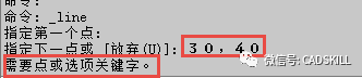 如果是指定直线的第二点的时候使用上述方式输入,不会提示出错。
