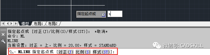 指定完多线起点后,再指定其他点的时候就没有机会输入S来设置比例了,如下图所示。