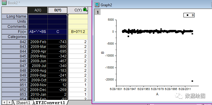 OriginPro正负方向不同着色的垂线图【数据绘图】