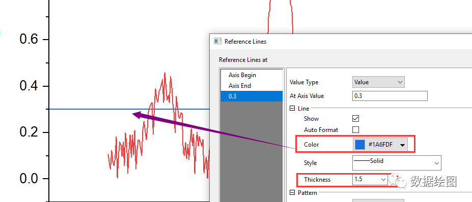 OriginPro如何在origin中画一条Y=0.3的水平线?方法3:你要的高大上方法