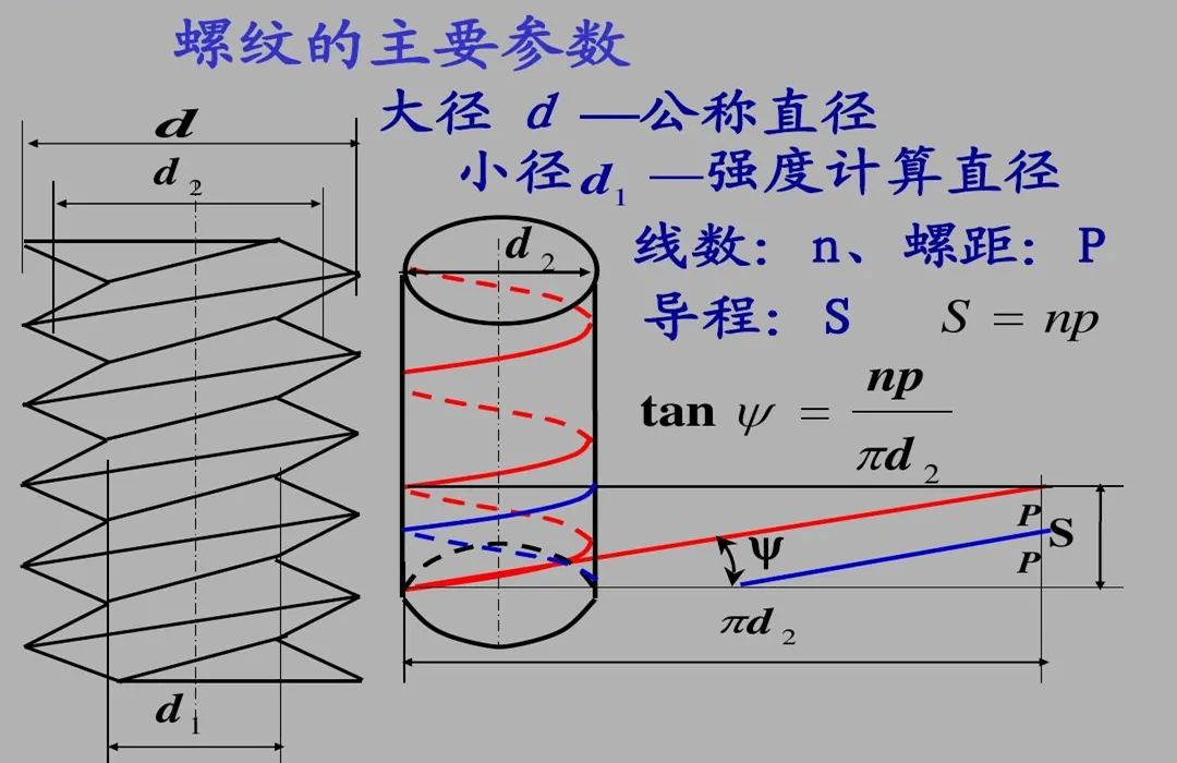 管螺纹主要用来进行管道的连接,其内外螺纹的配合紧密,有直管与锥管两种。公称直径是指所连接的管道直径,显然螺纹大径比公称直径大。