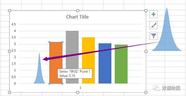 又到了Ctrl+C,Ctrl+V的时间,使用Ctrl+C复制修改好的“山峰”,再选中柱形图中的一个柱子,使用Ctrl+V黏贴到当前柱子上。