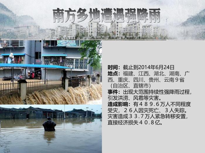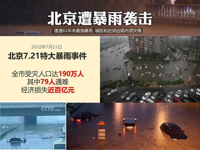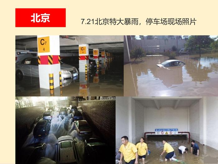 防汛防洪安全技术要点北京7.21特大暴雨事件 全市受灾人口达190万人 其中79人遇难 经济损失近百亿元2012年7月21日能源化工大数据平台-能化人必备 行业首创,不办会员也可扫码下载。 ※100万+标准规范,国标/行标/ASME/ASTM/国际标准全都有。 ※10万+HSE资料,全网最全,安全标准化/隐患排查/双控/法律法规。 ※10万+化工论文/电力论文/安全论文/环保论文。 ※10万+行业分析报告/图集/规范。 ※10万+行业书籍/教材。更多资料,登录www.cnmhg.com VIP会员尊贵权限 # 100万+标准规范随意下。 # 10万+HSE资料随意下 # 10万+化工论文/电力论文/安全论文/环保论文随意下。 # 10万+行业分析报告/图集/规范随意下。 # 10万+行业书籍/教材随意下。 #更有VIP会员合集专享。关注公众号,随时掌握行业动态加小编微信,进群天天享免费资料。北京7.21北京特大暴雨,停车场现场照片时间:截止到2014年6月24日 地点:福建、江西、湖北、湖南、广西、重庆、四川、贵州、云南9省(自治区、直辖市) 事件:出现大范围持续性强降雨过程,引发洪涝、风雹等灾害。 造成影响:有489.6万人不同程度受灾,26人因灾死亡、3人失踪。灾害造成33.7万人紧急转移安置,直接经济损失40.8亿。广东3月31日,广东首次发布红色预警 深圳降雨频率超50年一遇 2人因灾死亡5月11日,深圳遭遇08年以来最大暴雨 严重内涝使城市变成“水城”,广深线动车全部停运,造成直接经济损失约8000万元4月1日,广东暴雨导致严重内涝 强降水及风雹灾害已造成11人死亡5月20日,特大暴雨再次袭击广东 广东洪灾致13人遇难 官方启动国家Ⅳ级救灾响应江西5月8日,江西强降雨 致江西宜春等5市20县29.3万人受灾5月13日,江西迎来新一轮强降雨 96个乡镇4.78万人受灾,直接经济损失3666万元。5月17日,强降雨再袭江西 19.6万人受灾,农作物受灾面积17.8千公顷,直接经济损失1亿元。5月24日,大暴雨侵袭江西西部 局地受灾严重,部分县城汪洋一片。6月20日,启动省救灾四级应急响应强降雨已致江西21.2万人受灾,紧急转移安置3062人, 4人死亡,其中包括2名儿童。湖南 从5月25日早晨6时30分开始,湖南省邵东县开始普降特大暴雨,截至当晚已有3人因灾死亡。记者从湖南省防汛抗旱指挥部了解到,据初步统计,强降雨已导致永州、衡阳、长沙、郴州等6市220个乡镇约40万人受灾,520间房屋倒塌,16776人被紧急转移安置。 截至6月20日20时,据初步统计,最近一轮强降雨已造成湘潭、邵阳、永州、怀化、湘西土家族苗族自治州等7个市州29个县市区145.28万人受灾,4人死亡,2人失踪,11.64万人被紧急转移。2014年05月17日 CCTV新闻2014年05月17日 CCTV新闻2014年05月17日 CCTV新闻2014年05月12日 CCTV新闻2014年05月17日 CCTV新闻2014年05月12日 CCTV新闻CCTV新闻多次报道南方暴雨天气天有不测风云, 恶劣天气不能避免, 我们要做好应对的准备! 我们的努力, 将会避免人身生命和财产的损失! 第一章 防汛工作要点Part 1工作目标: 完善物业管理区域防汛体系,落实各项防汛制度,自查消除防汛隐患,提高应急抢险保障能力,把灾害造成的损失和影响降低到最低程度。1、xx市的汛期是每年的6月1日至9月15日, 其中7月20日至8月10日是主汛期。2物业项目负责人是本项目防汛第一责任人,全面负责防汛准备、汛期指挥、协助抢险救援等工作;物业企业主管领导为防汛主要负责人,负责督导各项防汛工作的落实; 落实防汛责任3物业企业应在项目公示栏或明显位置公布24小时应急电话,并安排专人值守。在遇险情时,值班人员要在 30 分钟内分别向属地的防汛指挥部和住建委、房管局报告;建立防汛值班制度4各物业企业应结合项目实际及历年受灾情况,制定可操作性的防汛应急预案,并在汛期前组织不少于一次的防汛应急演练,确保各项目负责人和一线工作人员能够熟练应对防汛应急情况。制定演练应急预案第二章 隐患排查和物资准备 物业项目负责人应于每年 3-4 月组织防汛专项检查,及时处置检查中发现的问题。属于《北京市物业管理办法》中规定的危及房屋使用安全的6种紧急情况,可按照《关于简化程序方便紧急情况下使用住宅专项维修资金有关问题的通知》规定的应急程序办理地下车库出入口、地下室及人防、首层出入口 逐一检查项目地下车库、地下室及人防、首层出入口,对低于室外地面易发生雨水倒灌的部位,应配备挡水板、防汛沙袋等,高度不低于 50cm,有条件的可砌筑防水台。2 外围排水管线 对照室外管网图和实际情况,对所有污水井、集水坑、化粪池、雨水井及其附属管线进行检查,并检查排水管线与周边市政排水管网的接口,发现井盖和井篦破损、管线堵塞(例如:管线坍塌、有积水、有杂物等),及时维修或清理,并注意做好检查、清理和维修的工作记录。九种常见隐患的排查及处置3.排水泵及其控制柜(箱) 对照排水系统图,对项目内污水井、集水坑的排水泵检查,重点检查运转及排水情况。由工程维修人员进行点动测试后,若出现不能正常启动、运行有异响,或管道及法兰接口渗漏等现象,应及时修复。点动测试后,将控制柜(箱)开关恢复至“自动”位置。九种常见隐患的排查及处置4. 屋面防水及保护层 对屋面防水层、保护层及上一汛期中的漏水点进行全面检查,如发现防水层或保护层鼓包、破损、裂纹、接口开裂等现象,应及时修补,并进行不少于48小时的闭水实验,确认无渗漏点。 如汛情来临前无法修