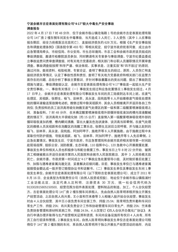 宁波余姚市吉宏表面处理有限公司“4·17”较大中毒生产安全事故docx