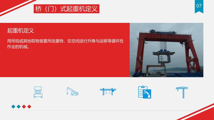 为保护电气设备及工作人员的安全,起重机电气控制系统都要设置必要的电气保护措施。一般有主隔离开关,总电源的短路保护、失压保护、零位保护、电动机的过载保护,紧急断电开关及断错相保护等。 根据《特种作业人员安全技术考核管理规则》的要求,起重作业人员必须经过当地政府职能部门的安全培训和考核。合格发证后,方可上岗作业。特种作业操作资格证书: 起重安全管理人员 起重机械司机 信号指挥工 电气安装与维修工 机械安装与维修工 持证上岗 定期复审起重作业人员上岗前必须进行三级安全教育培训。起重作业人员上岗前必须进行体检,杜绝职业禁忌症; 合理安排作息时间和工作量避免超负荷疲劳作业; 了解电源供电和是否有临时断气检修的情况。 断开总开关,检查起重机各机构情况、各开关是否正常、制动器是否正常、各部位的固定螺栓是否松动、车上有无散放的物品等。 检查运行轨道上及轨道附近有无妨碍运行的物品。 对在露天工作的起重机,应打开夹轨器或其它固定装置。精神集中,不准与同室其他人员闲谈,不做与工作无关的事。 先空车开动各机构,判断各机构运转是否正常。 必须遵从指挥信号,信号不明或有人员没有离开危险区域之前不准开车。 随时注意天气变化,遇有大风侵袭,应及时采取防护措施。 每班使用前,作业人员应当对制动器、 吊钩,钢丝绳和安全装置进行检查。发现异常时,应当在操作之前排除,并作好相应记录。严禁设备带故障运行。 日常检查至少每月进行一次定期检查,包括: 起重机正常工作的技术性能; 所有的安全保护装置、防护装置; 电气线路及工作性能; 吊钩和其他吊索情况; 制动器性能及其零件的磨损情况; 钢丝绳磨损和尾端的固定情况; 链条的磨损、变形、伸长情况。日常检查检查轨道偏差,若超过标准规定的20%轨道必须重新矫正;如果运行情况显著恶化,即使没有超过允许偏差的20%,也需要矫正轨道。 查看钢轨有无裂纹、头部下陷、变形和侧面磨损,应及时更换和调整。 查看压板、螺栓(或钩形螺杆)是否松动、脱落,并应及时拧紧和配齐。 查看道钉和鱼尾板螺杆是否松动短少,并应及时拧紧和配齐。 检查小车轨道偏差是否符合标准要求,若轨道偏差超出标准要求必须重新矫正。 查看接地、接零装置是否可靠。缓冲器及车挡有无损伤、错位、脱落。整机维护——轨道查看焊缝(必要时可用5倍的放大镜)有无裂纹,如有裂纹应及时处理。 检查主梁的跨中上拱度以及水平旁弯及其它变形是否符合标准规定要求,若有超出标准规定现象,应及时矫正修复。 查看连接部分,有无松动、脱落、裂纹、腐蚀,如有应及时修复。 查看销轴连接处,是否牢固可靠,开口销是否脱落,其尾部开口度是否符合要求,如有情况应及时处理。 清洁钢结构的油污和灰尘,检查其表面防护,油漆不得有起泡、剥落和明显锈蚀。整机维护——钢结构按有关规定(或使用说明书)更换各机构减速器的润滑油。 注意紧固各机构底座、减速箱壳及其它部分的连接螺栓。 调整各机构制动器,油量是否合适,是否漏油,机架有无裂纹与开裂和松动,应达到有关标准或说明书的要求。 调整各限位开关,使限位开关元件间隙达到要求。 调整起重机和起重小车车轮在垂直面上的偏斜、起重机和起重小车车轮在水平面上的偏斜,使之达到标准规定的要求。(此条在日常维护中不能达到要求,建议取消。) 检查滑轮,有无裂纹、缺损、磨损,联接紧固情况。 注意吊钩总成有关螺栓的紧固,防脱绳装置应安全可靠。 查看卷筒,有无裂纹、变形与磨损,钢丝绳固定部分有无异常、脱槽,以及联接紧固情况;钢丝绳的使用情况,应严格按GB/T 5972标准执行。 清洁各机构的油污与灰尘。整机维护——机构 起重机的定期检查、维护保养最好由具有起重机械的制造、安装、改造、维修许可资格的单位实施。定期检查、维护保养工作做好详细记录,并且提供给使用单位。 本单位有能力进行定期检查和维护保养的,也最好取得维修许可资格。检查和纠正使用中的违章行为,发现问题应该立即处理;情况紧急时,可以决定停止使用起重机并且及时报告有关负责人; 现场盯控督促实施日常检查 安全技术档案整理归档 日常检查编制定期检验计划并且落实定期检验的报检工作 定期检验制定事故应急救援预案,并且定期组织应急救援演练。 应急救援组织作业人员的安全教育和培训工作,保证其具备必要的安全作业知识。 培训教育2009年8月19日16时40分左右,位于嘉定区封杨路555号的中交第三航务工程局股份有限公司(以下简称“中交三航局”)上海嘉定制梁场内,一台 10吨的门式起重机在突发的强风中发生滑动,移出轨道并倾覆,造成4名员工死亡,3人受伤。 一.天气原因 根据对起重机倾覆的动力原理计算,得出导致起重机倾覆的最小风力应该大于8~9级平均风速,此时的风力状况下应当是禁止起重机作业的。 二.设备缺陷 起重机的大车行车制动器没有按照规定要求调整到有效工作状态,使得起重机初始移动时无制动力; 起重机夹轨器无操作方向标识,容易使操作人员操作失误或者延误操作时间; 起重机轨道未设置轨道终端止挡装置使得起重机滑出轨道。 三.操作不当 当操作人员离开起重机时,应该按照操作规程进行夹轨器夹紧作业,从事故现场分析,事故时起重机夹轨器没有夹紧导