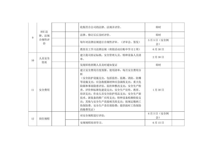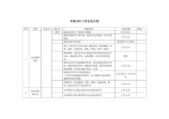 年度HSE工作五定计划EHS培训计划应急演练计划月度工作计划(每月固定事项)一月二月三月四月五月六月七月八月九月十月十一月十二月