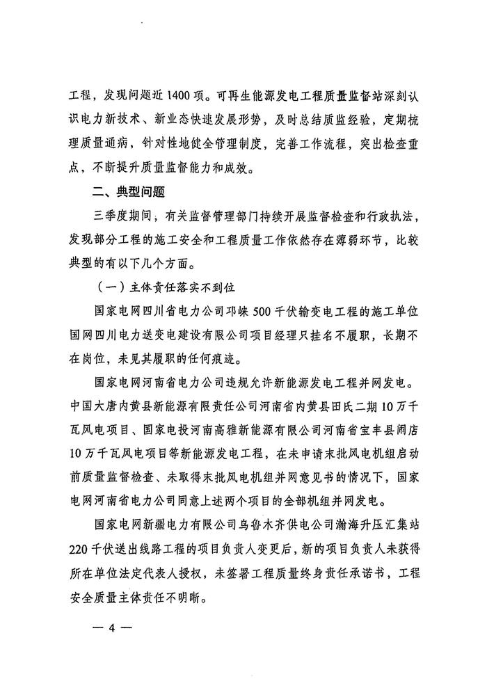 国家能源局综合司关于2024年三季度电力建设施工安全和工程质量典型问题的通报(3)pdf