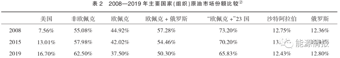 三、低碳时代“ 欧佩克 +”的国际原油市场控制能力