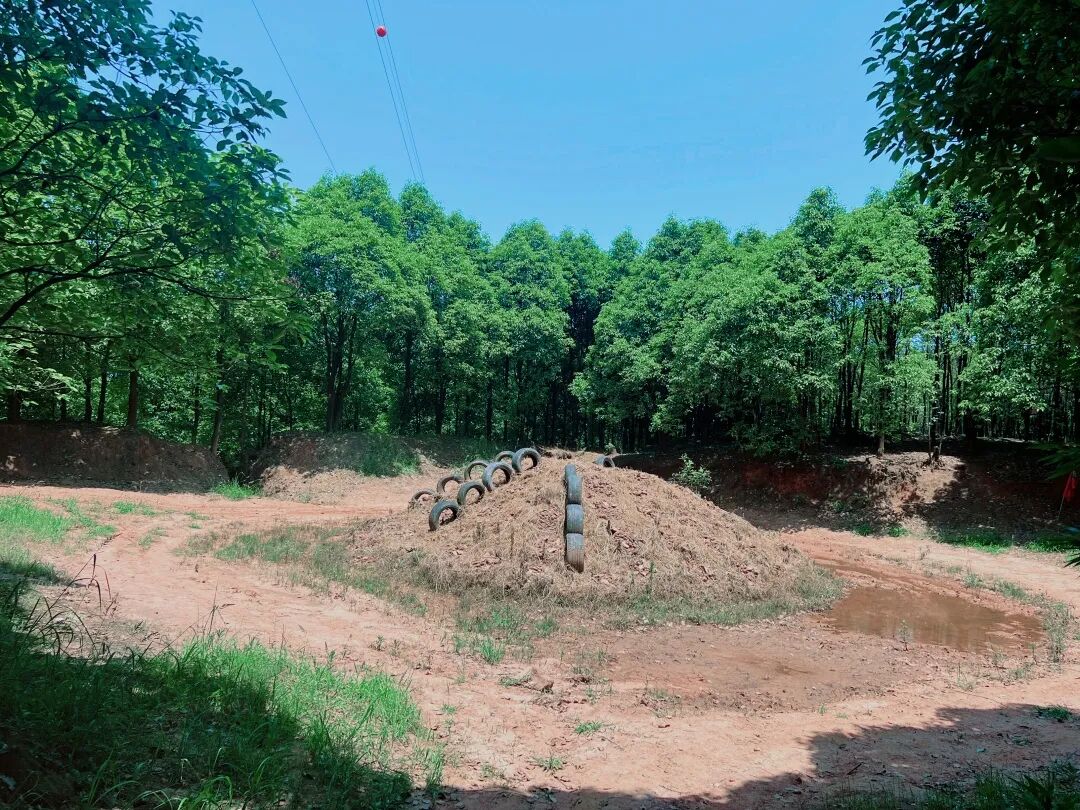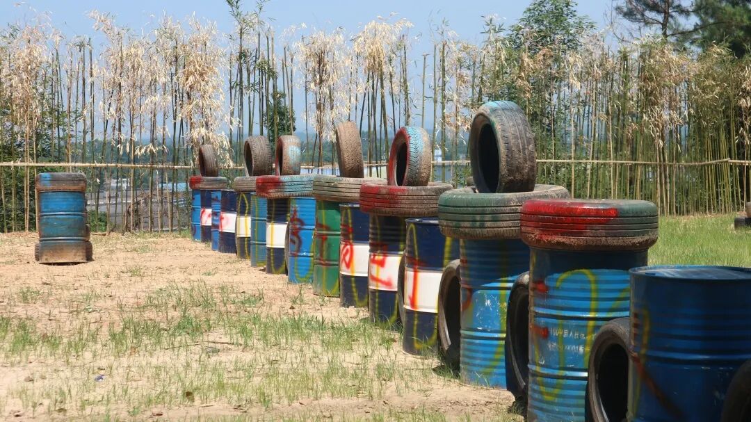 沙堆、挡板、轮胎、树木