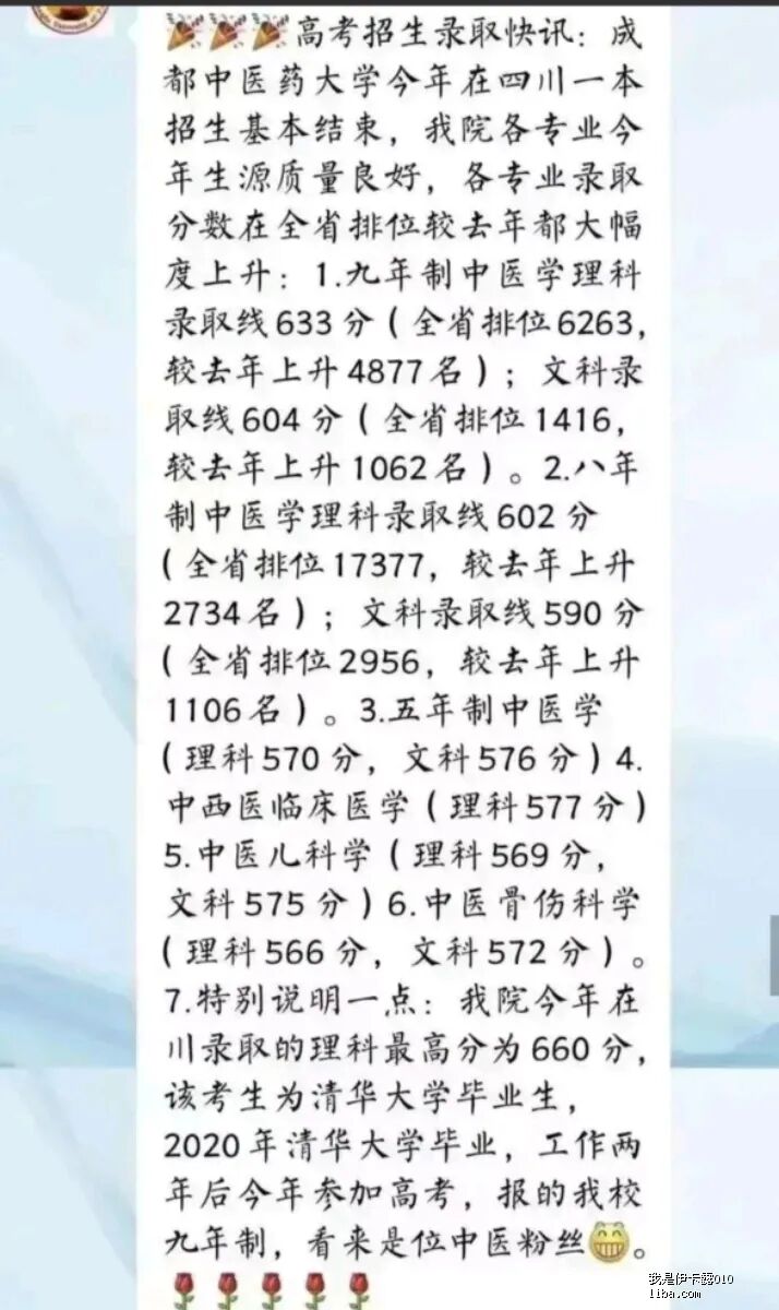 录取了一位清华高材生,该生2020年清华大学毕业,今年高考660分,报考了九年制中医专业,成功圆梦成都中医药大学!