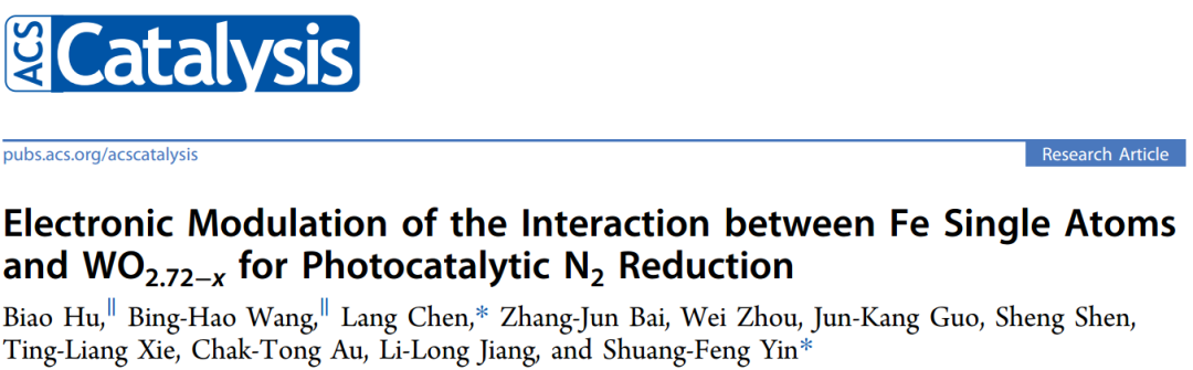 Biao Hu, Bing-Hao Wang et al . Electronic Modulation of the Interaction between Fe Single Atoms and WO2.72−x for Photocatalytic N2 Reduction. ACS Catal. 2022, 12, 11860−11869
