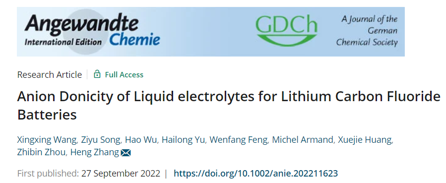 Xingxing Wang, et al, Anion Donicity of Liquid Electrolytes for Lithium Carbon Fluoride Batteries, Angew. Chem. Int. Ed. 2022