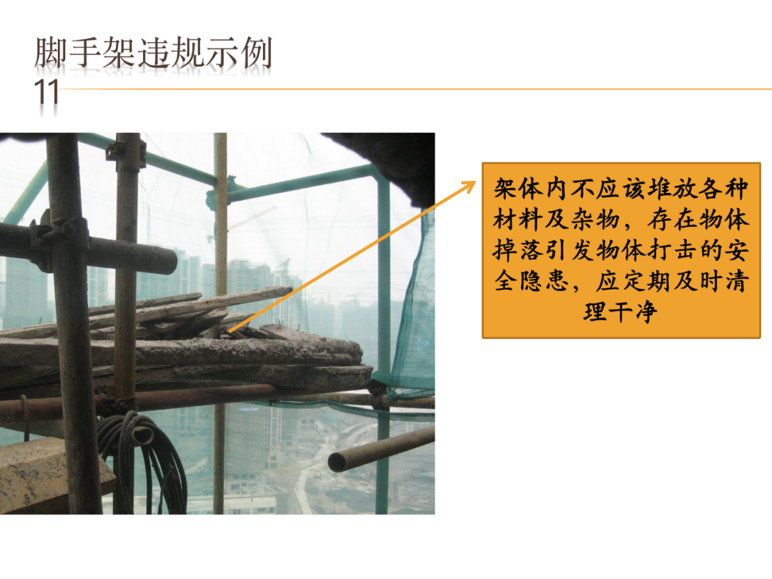 五、《建筑施工工具式脚手架安全技术规范》JGJ 202-2010第4.4.2、4.4.5、4.4.10、4.5.1、4.5.3、5.2.11、5.4.7、5.4.10、5.4.13、5.5.8、6.3.1、6.3.4、6.5.1、6.5.7、6.5.10、6.5.11、7.0.1、7.0.3、8.2.1条。