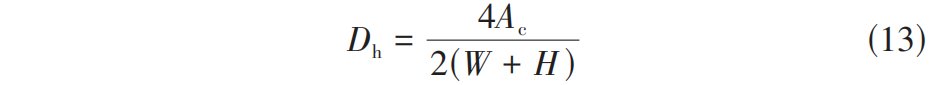 式中, A c 为微通道横截面面积; W 和 H 分别为微通道横截面的宽度和高度。