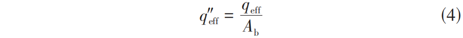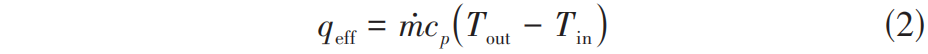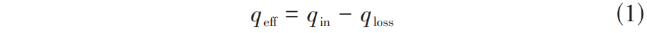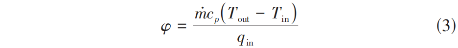 通过式(1)、式(2)可以计算得到有效的换热量 q eff 与总加热量 q in 的比值 φ ,如式(3)。