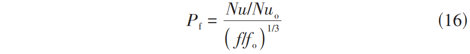 为了进一步评价激光处理的多孔壁面微通道的单相换热性能,结合考虑传热和压降的影响,通常采用综合性能因子 P f ,具体计算如式(16)所示。