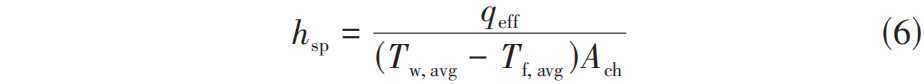 由牛顿冷却定律可计算得到单相平均换热系数如式(6)所示。