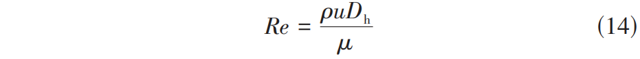 流动雷诺数的计算方式如式(14)所示。