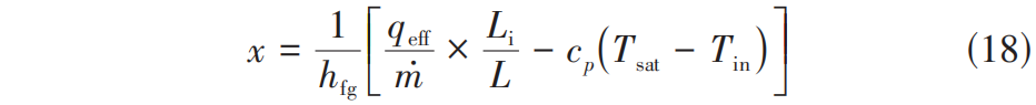 式中, h fg 为液体的汽化潜热; L i 为入口到测温点对应壁面的水平距离。
