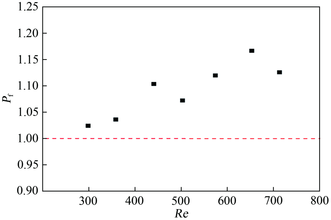 图7 综合性能因子 P f 随 Re 的变化趋势