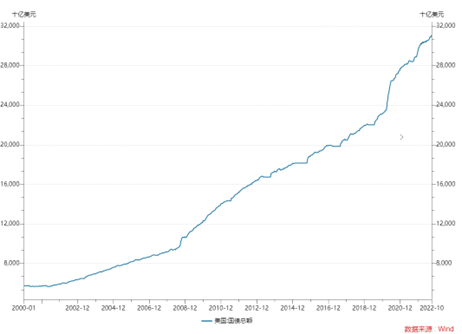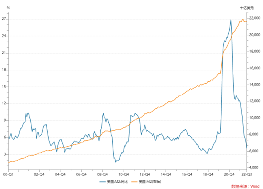 2020年新冠疫情爆发后,美国开启了无限量的量化宽松政策(QE)。截至目前,美国的M2存量较2020年初上升了6.22万亿美元(约44万亿人民币)。