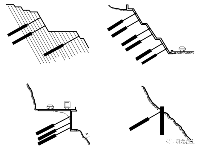 锚杆布设原则上应根据实际地层情况以及锚杆与其它支挡结构联合使用的具体情况确定,必须充分了解边坡的地质状况,确定边坡变形破坏的模式后,才能决定锚杆布设位置。