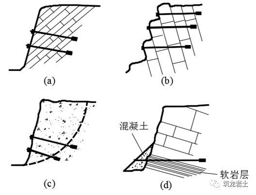 当存在软岩层或风化带,可能导致边坡变形破坏时,锚杆应穿过软岩层或风化带布置,并采用混凝土锚固墩封闭。