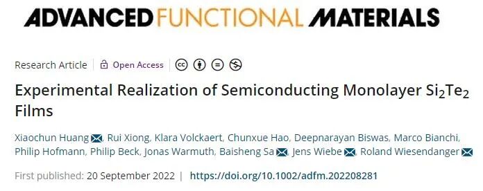 汉堡大学、福州大学AFM:实验合成单层Si2Te2半导体薄膜