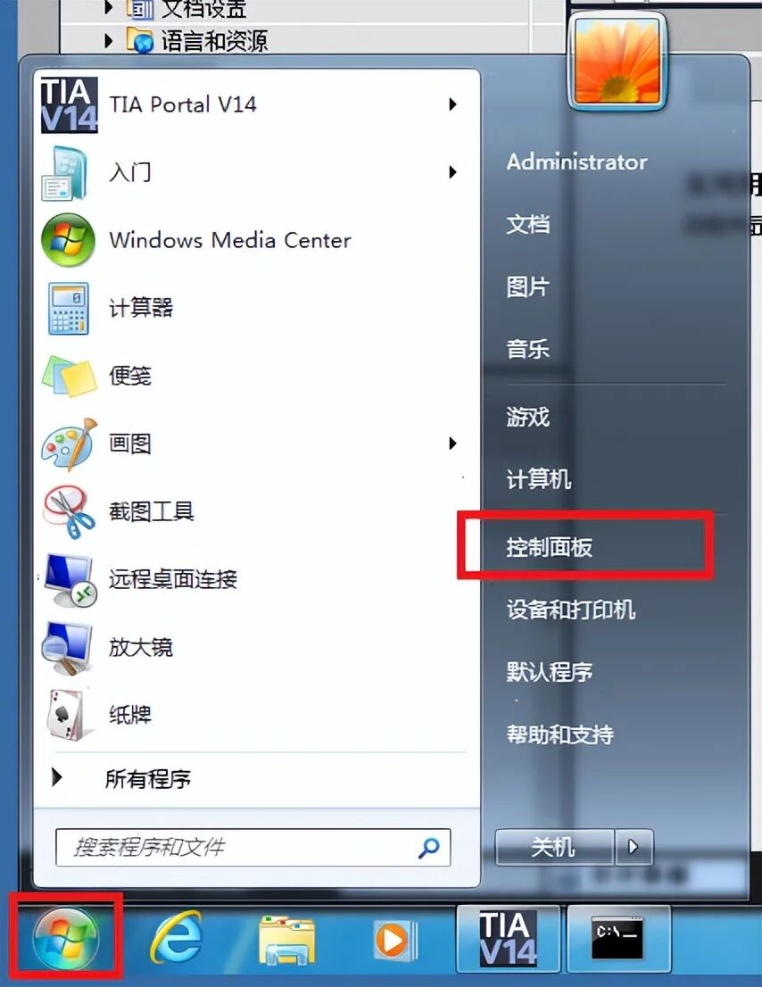 在电脑的操作系统中点击“开始”菜单,打开“控制面板”选项。