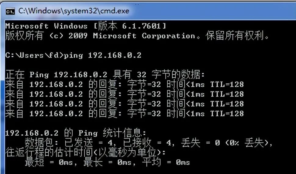 在弹出的 MS-DOS 窗口中输入 ping 精智(Comfort)屏IP地址,看到丢失后的数字为 0 时,说明物理连接正常,如果丢失后的数字不等于 0 ,那么需要重新检查两台设备的IP地址是否在同一网段,并且更换其他网线重新执行 ping 命令直到丢失后的数值为0时才可进行下一步。