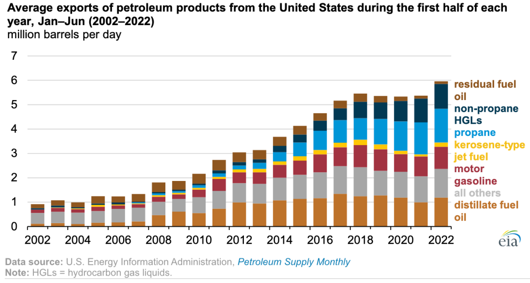 【数据】2022年上半年美国石油产品出口创1973年以来的纪录