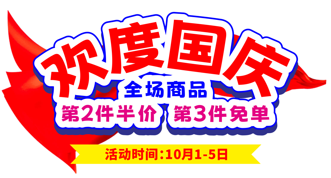 欢度国庆,全场商品第2件半价,第3件免单!