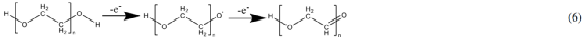 PEO分子链末端的羟基(-OH)将失去电子并形成单原子自由基(-O),而质子被锂盐捕获(公式1)。鉴于分子链中的羟基比例较低,我们对PEO在4.2V电压下的分解过程做了以下假设。PEO分子链中的C-O键断裂,形成分别带有-O-和-CH