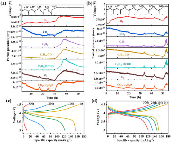 从电池中释放出来。在电压可以达到4.6V之前,出现了一个很长的PEO分解平台,伴随着各种气体的严重释放,包括H