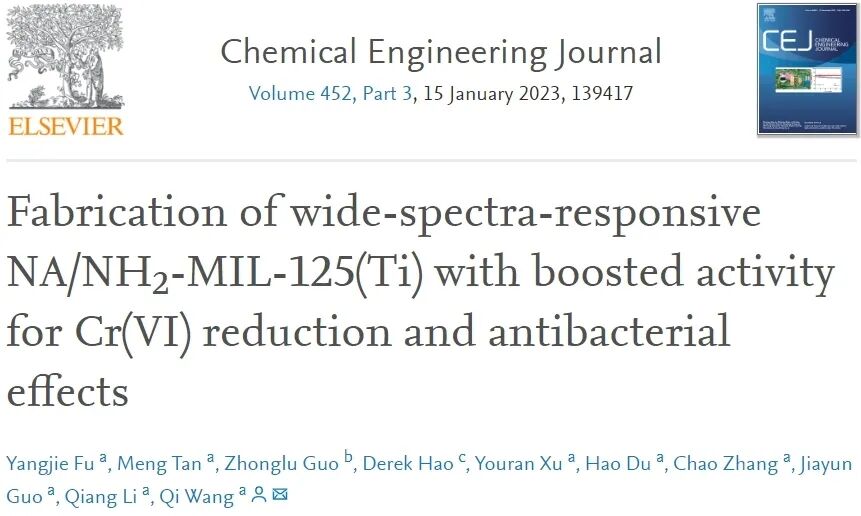 和抗菌的性能。论文第一作者为浙江工商大学环境科学与工程专业研究生傅炀杰,通讯作者为王齐教授。