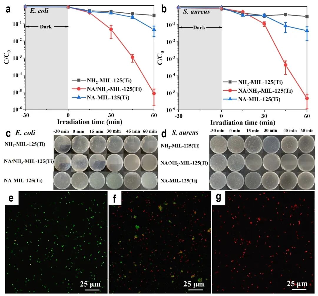 样品对大肠杆菌和金黄色葡萄球菌光催化灭活的作用。与对照样品相比,