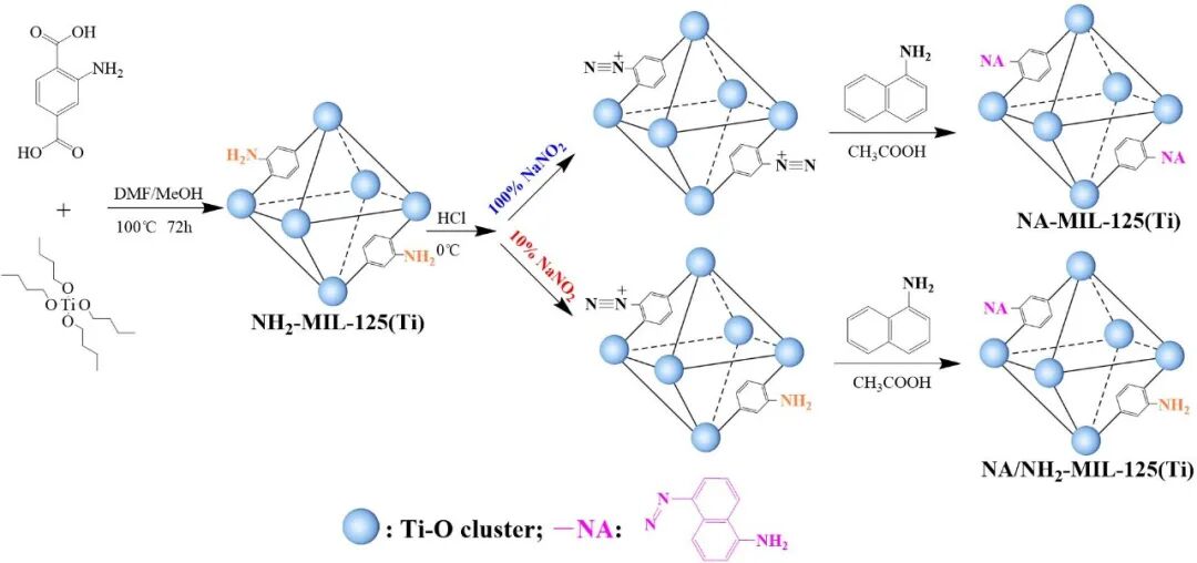 不同样品的合成路线。笼状结构代表MOFs中的空腔。