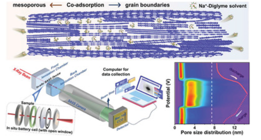 1 ) 各种先进的光谱技术证实了这一机理,包括原位同步辐射小角X射线散射跟踪长周期结构演变和非原位同步辐射X射线吸收精细结构验证溶剂化钠与石墨层的相互作用。此外,通过密度泛函理论模拟和像差校正的透射电子显微镜进一步揭示了提高的速率-能力和可逆性的来源。