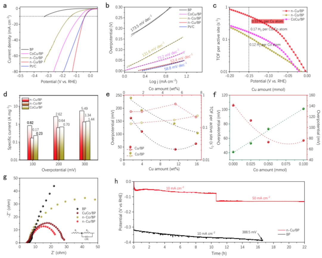 鉴于此, 重庆大学王煜团队 成功在黑磷载体上合成了用于电化学制氢的适度配位的 Cu-P 3 结构。