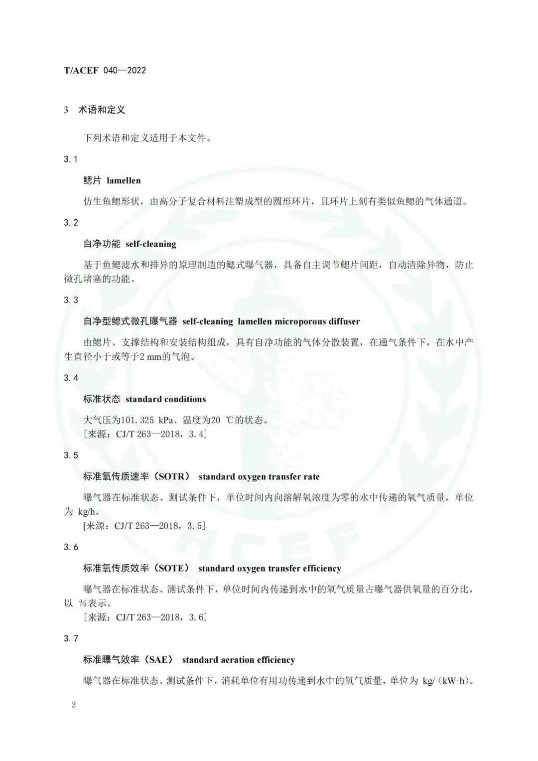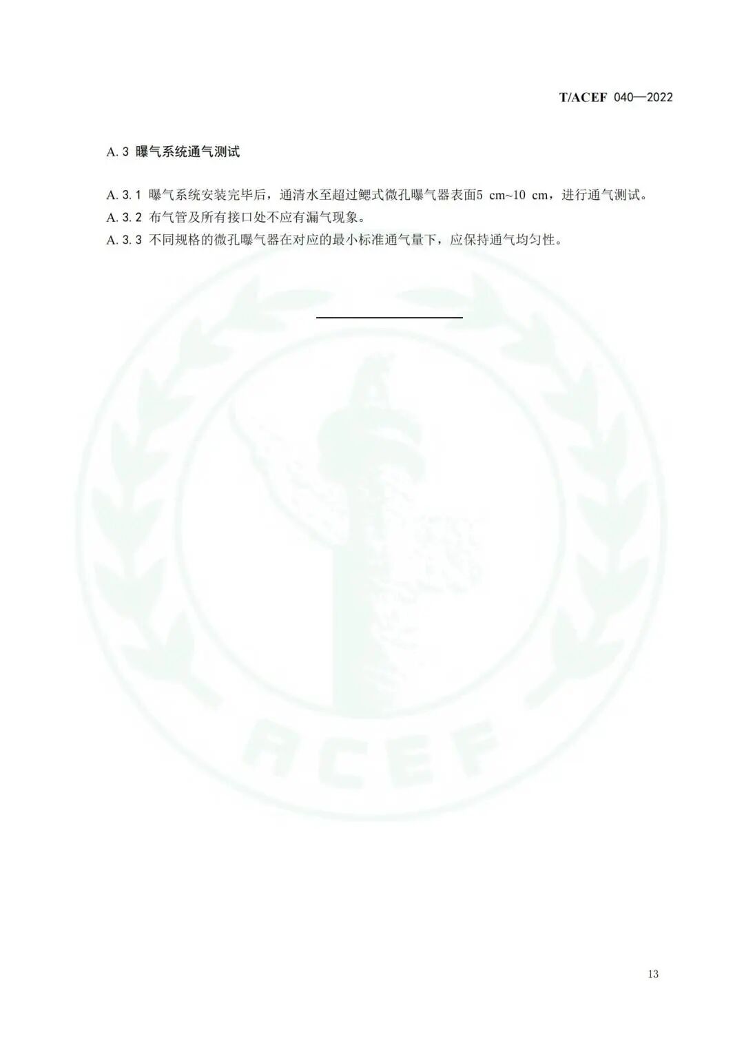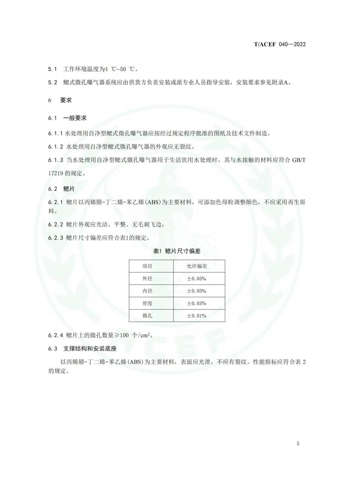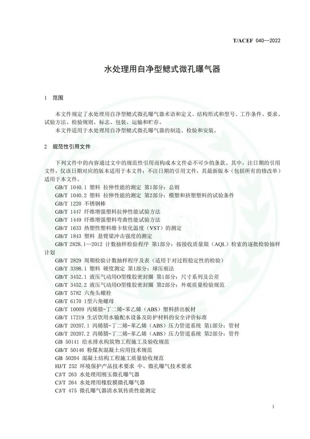 《水处理用自净型鳃式微孔曝气器》(T/ACEF 040—2022)标准发布