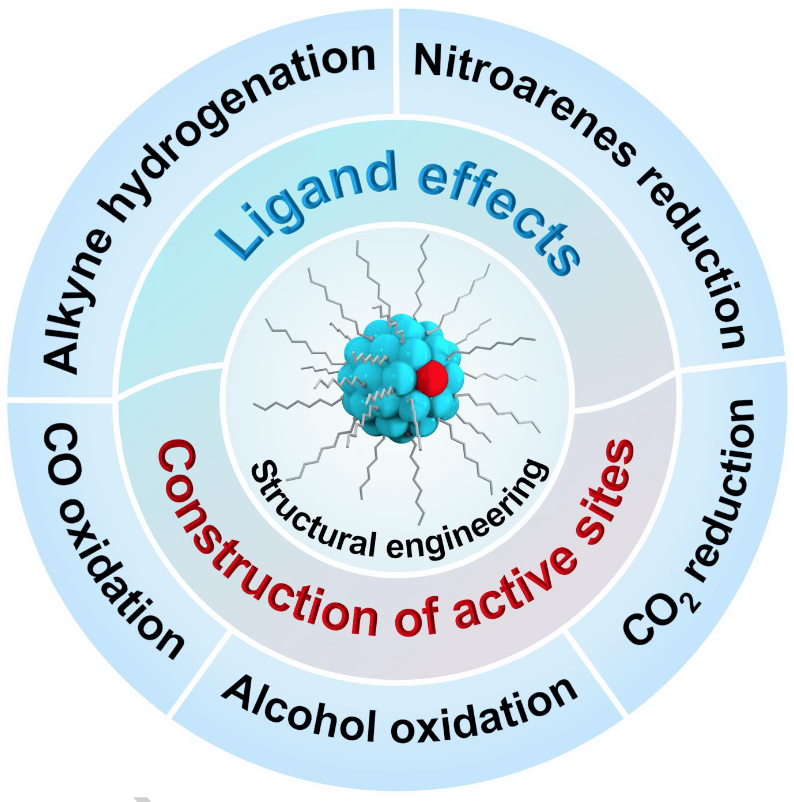 原子级精确的金纳米团簇为探索纳米金催化剂的结构和性质之间的关系提供了很好的平台。纳米团簇由金属核和表面配体壳组成,核和壳都对催化性能有显著影响。由于它们的精确结构,可以很容易地识别团簇的活性金属位点,并且可以揭示催化反应中的配体效应。