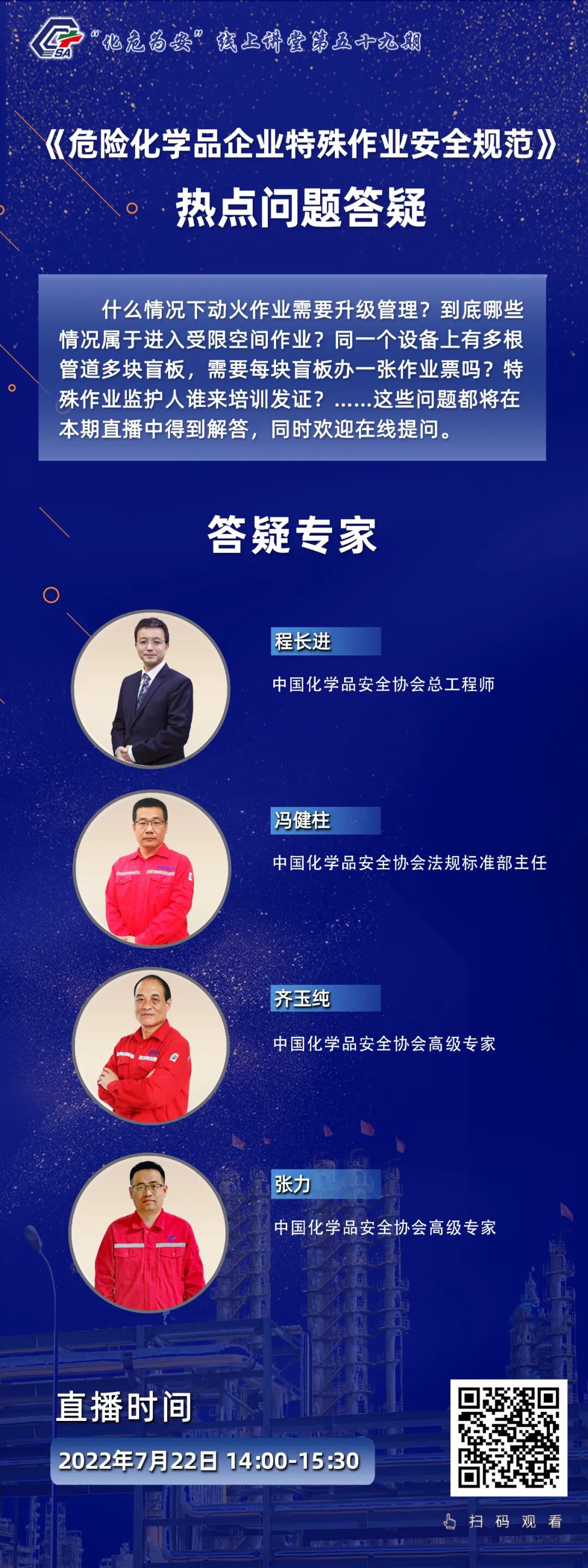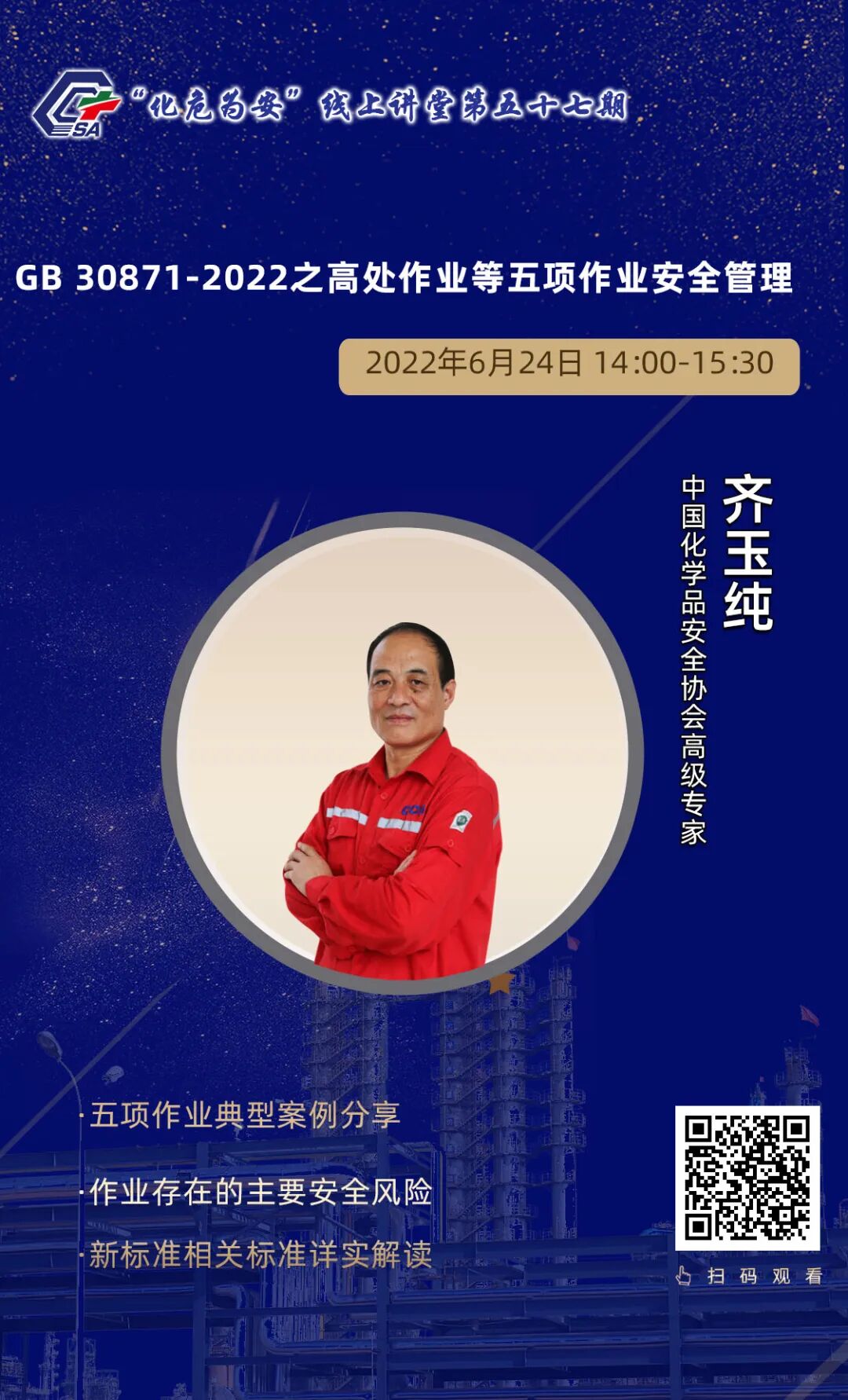 为便于危险化学品企业更好地深入理解、掌握标准,中国化学品安全协会先后举办了6场关于GB 30871-2022 的“化危为安”线上讲堂,近半年来陆续解答了协会网站上收到的各企业员工关于GB 30871-2022的近300项疑难问题, 出版了《危险化学品企业特殊作业安全规范应用问答》(《应用问答二》正在编辑中)。