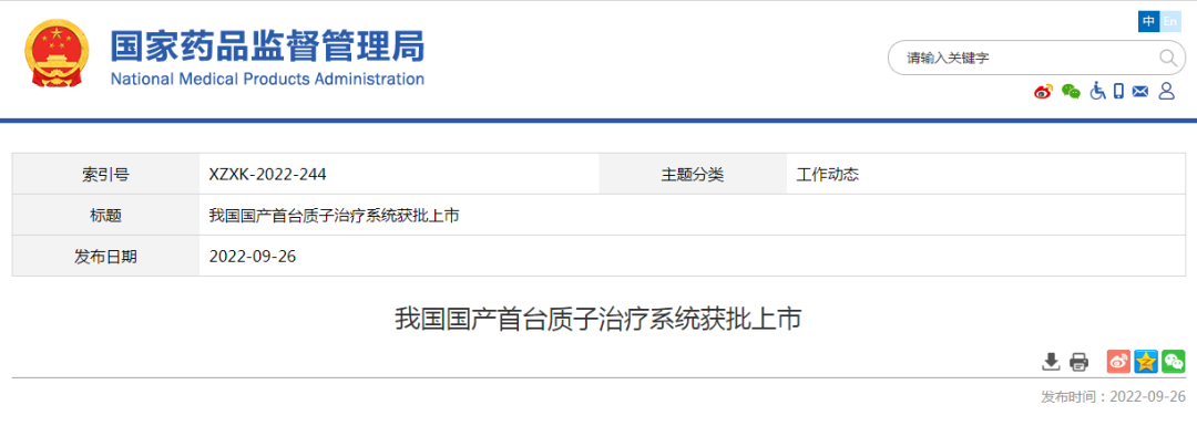 关注 | 我国国产首台质子治疗系统获批上市!