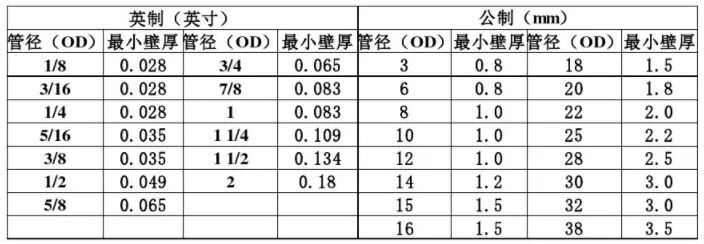 1/4管:表示1/4英寸OD的管