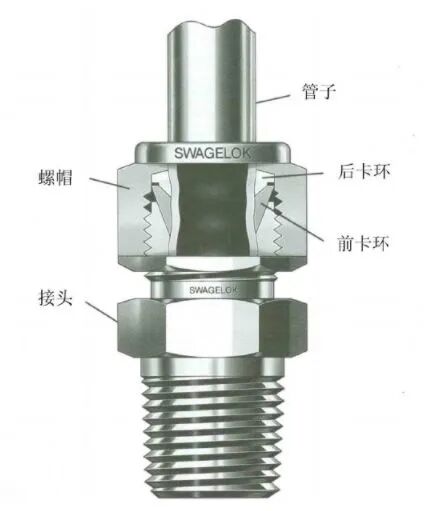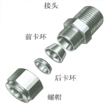 标准的管接头由螺帽、卡环(有的只有一个卡环)、接头、以及管子组成。