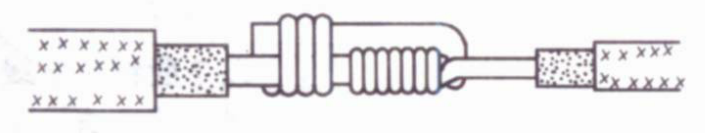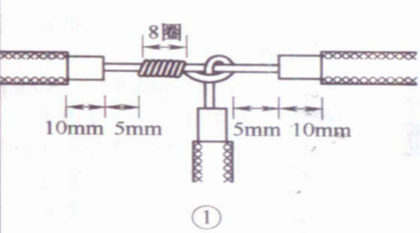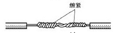 把细导线线头在粗导线线头上紧密缠绕5~6圈,弯折粗线头端部,使它压在缠绕层上,再把细线头缠绕3~4圈,剪去余端,钳平切口。