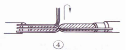 ⑥接着把处于紧挨平卧前邻近的2根芯线折成90° ,并按步骤⑤ 方法加工。